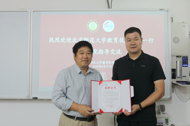 教育科学学院党委书记多强为北京师范大学教育技术学院颁发捐赠证书